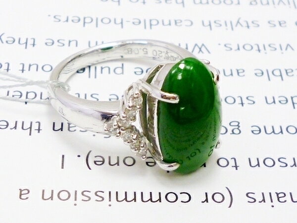 K18WG×翡翠5.08ct×ダイヤモンド0.20ct ヒスイゴールドリング