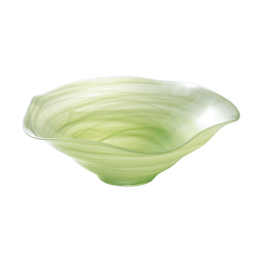 【マルモ フレアーボール(グリーン)】 おしゃれなガラスのお皿です。